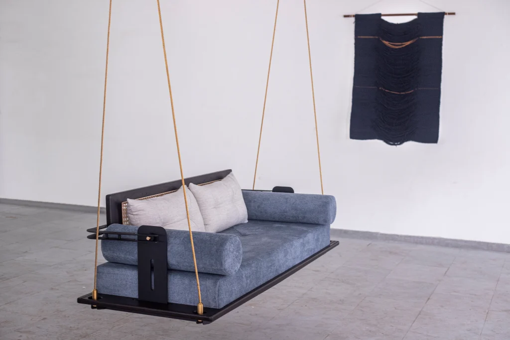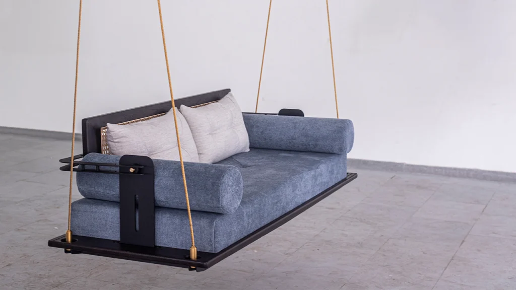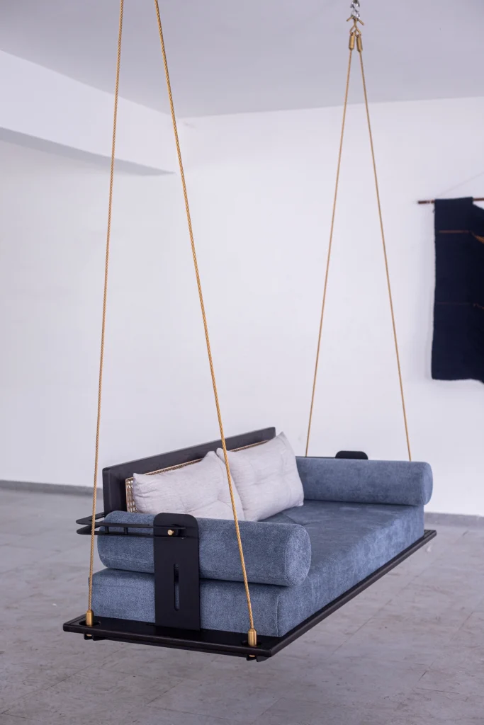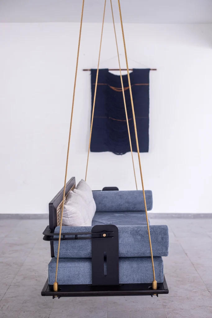reversible backrest are noteworthy, while a black powder-coated Mild Steel frame and twisted metal cable